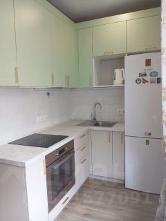 Кухня - гарнитур, духовка, электрическая варочная поверхость, холодильник, микроволновка, стол обеденный.