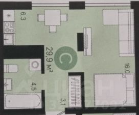Общая площадь 30 кв.м., комната 16 кв.м.