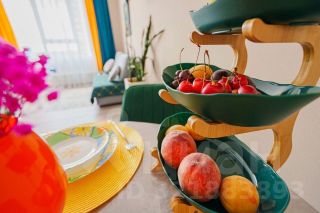 - Полностью оборудованная кухня с электрической плитой, микроволновой печью, кофемашиной, холодильником, электрочайником и набором посуды.