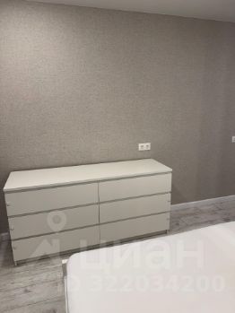 В комнате: двухспальная кровать, шкаф-купе, комод, диван.