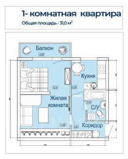 Общая площадь квартиры — 30,7 кв. м, находится на 2 этаже 5-этажного дома.
