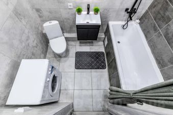 - Все удобства для вашего комфорта — стиральная машина, холодильник, душ, санузел, фен, утюг.