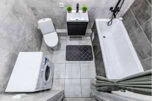 - Все удобства для вашего комфорта — стиральная машина, холодильник, душ, санузел, фен, утюг.