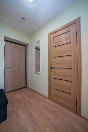 Квартира в Екатеринбурге на Отрадной 1. Рассчитана на размещение до 4-х человек и оснащена одной двуспальной кроватью и диваном.