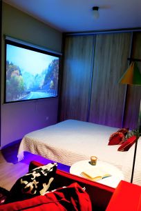 Апартаменты со вкусом в современном жилом комплексе в самом центре города — чистое, уютное пространство, где есть всё для комфортного отдыха. Парящая кровать создаёт атмосферу уюта и лёгкости, а проектор превращает вечера в настоящий киносеанс. Вокруг модные рестораны, кофейни и бутики, чтобы каждый день был особенным.