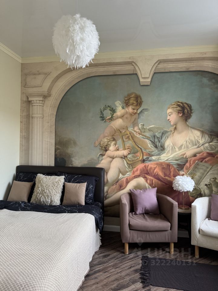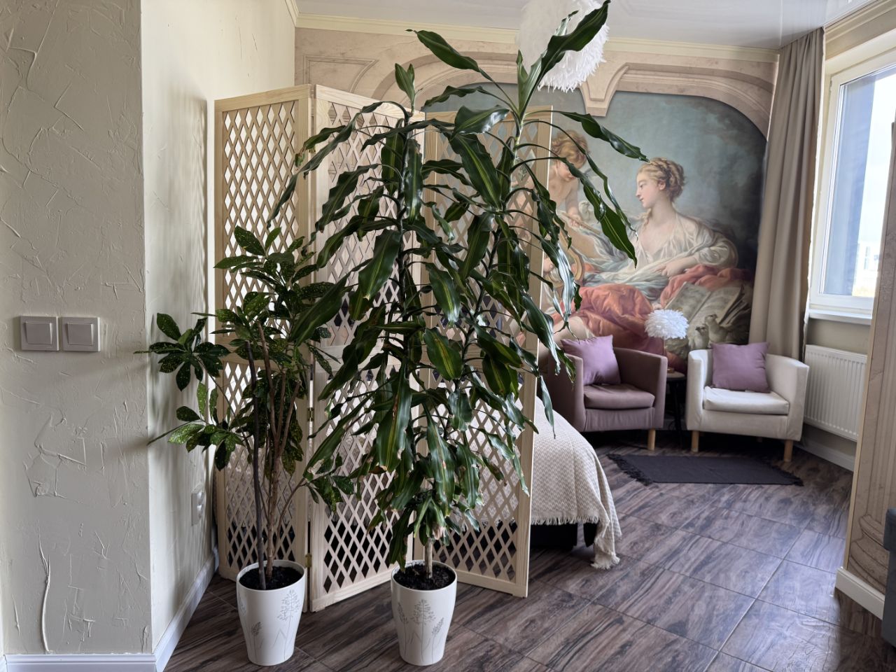 Квартира рассчитана на комфортное размещение до 3 гостей. Интерьер выполнен в нежных бежевых тонах с изысканными элементами: ангелы и люстры из перьев создают особую атмосферу лёгкости, спокойствия и гармонии. Эти детали придают пространству лёгкость и воздушность, помогая расслабиться и почувствовать внутренний комфорт.