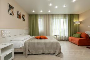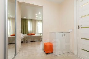 Квартира подойдет для заселения до трех человек (есть двуспальная кровать, при желании трансформируется в две односпальные и кресло-кровать). В виде двуспальной кровати крепления плотно фиксируют сцепку, чтобы кровати не разъезжались, а верхний матрас позволяет не чувствовать стык.