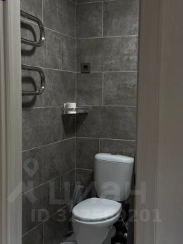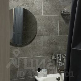 Ванная комната: стильная ванная комната с новой сантехникой и всеми необходимыми принадлежностями (полотенца, шампунь, гель для душа).