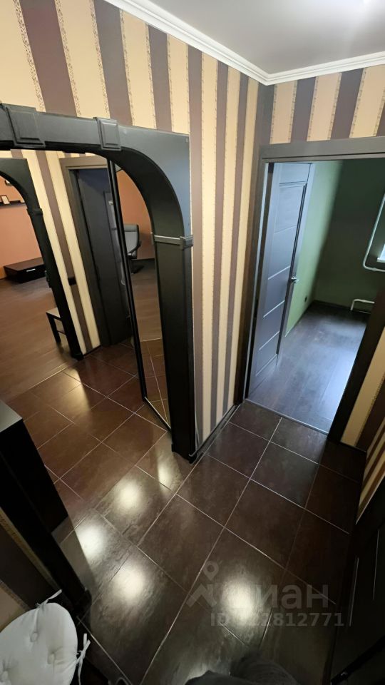 В коридоре расположен угловой шкаф для верхней одежды с зеркалом в пол, 4 секционный комод IKEA для хранения обуви, пол керамогранит, домофон и огнетушитель.