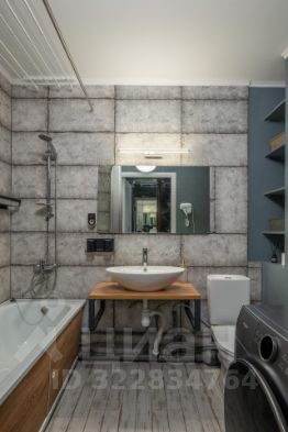 Ванная комната: ванна, стиральная машина, полотенца, утюг, гладильная доска, сушилка, фен, гель для душа, шампунь, мыло, зубная паста.