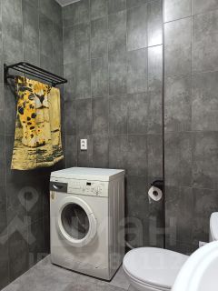 В ванной комнате стиральная машинка.