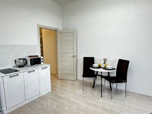 * Стильная кухня с техникой (холодильник, микроволновка, электрический чайник, вся посуда)