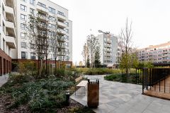 Приватный цветущий внутренний дворик с зонами отдыха как для детей, так и для взрослых.
