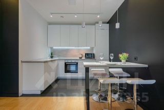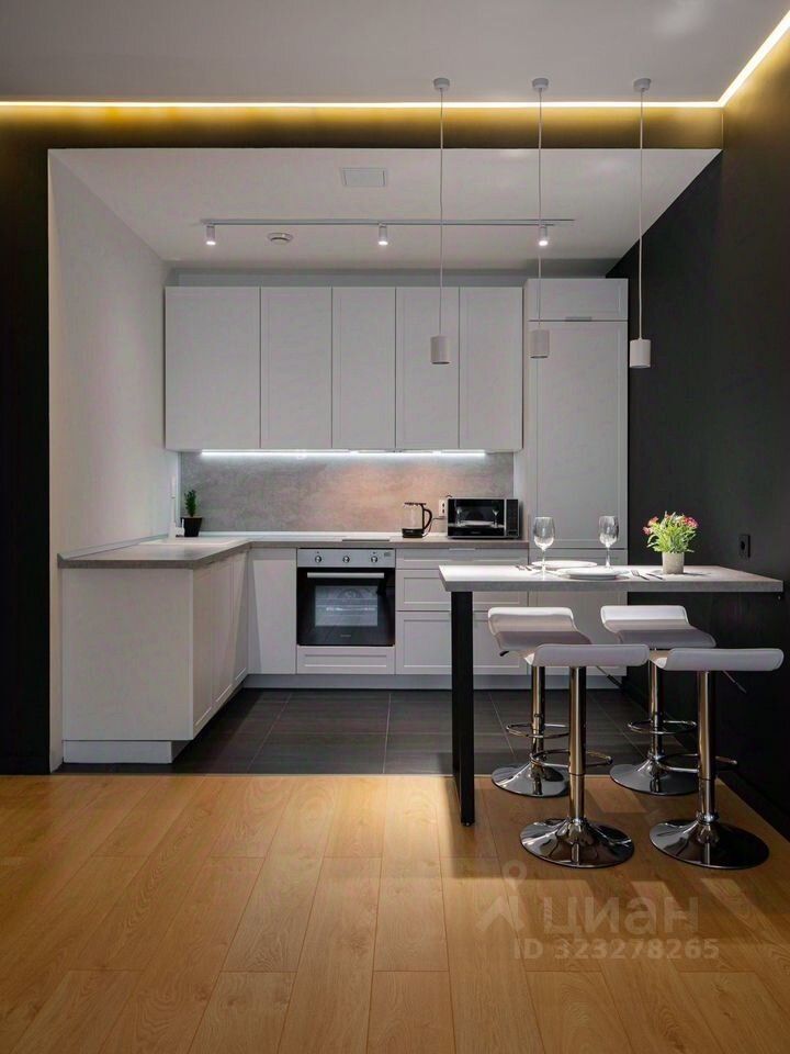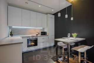Укомплектованная кухня со всем необходимым (холодильник, варочная панель, микроволновая печь, посудомоечная машина, чайник, кофемашина, а также посуда, приборы);