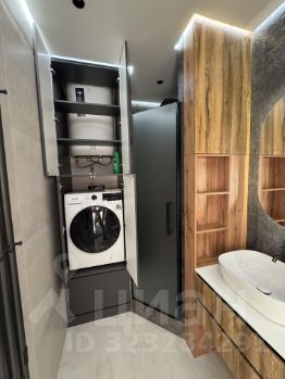 В санузле стиральная машина с сушкой и водонагреватель на 100 литров.