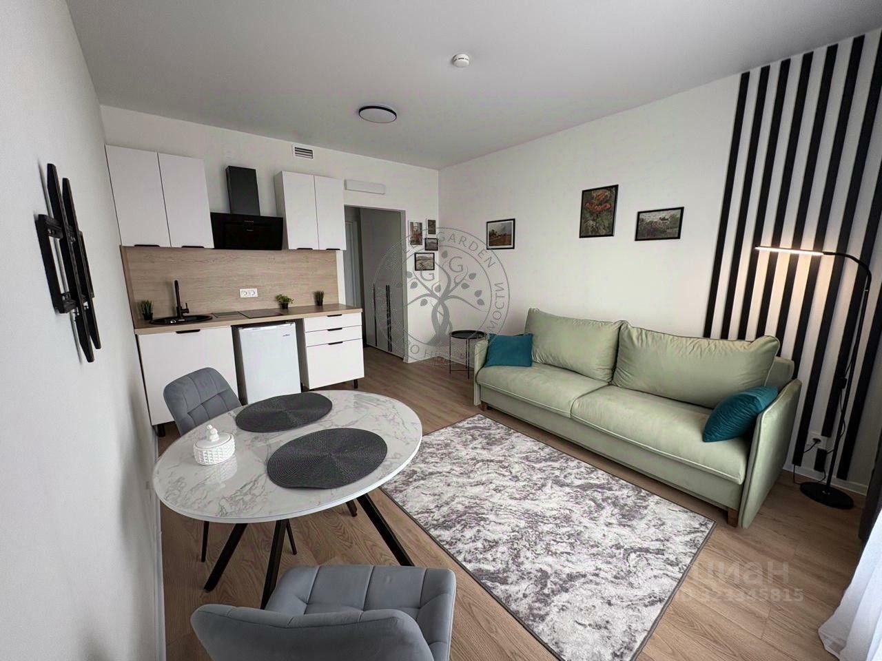 Сдаётся абсолютно новая студия на 24-м этаже! Из панорамных окон открывается живописный вид на изгиб реки и вершины новостроек.