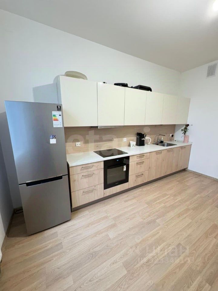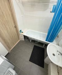 Большая спальня, в спальне имеется шкаф. Раздельный сан узел, большая ванная комната, стиральная машинка. Кухня просторная 14 кв.м. Встроенный гарнитур с плитой и духовкой, посудомоечная машина, холодильник, обеденный стол и стулья. В квартире хорошая шумоизоляция.