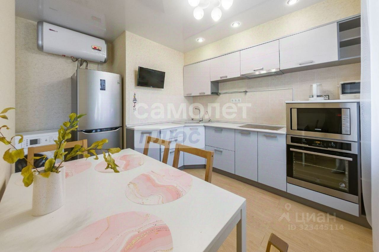 - полностью оборудованный гарнитур с техникой (встроенный духовой шкаф, варочная поверхность, микроволновка, холодильник)