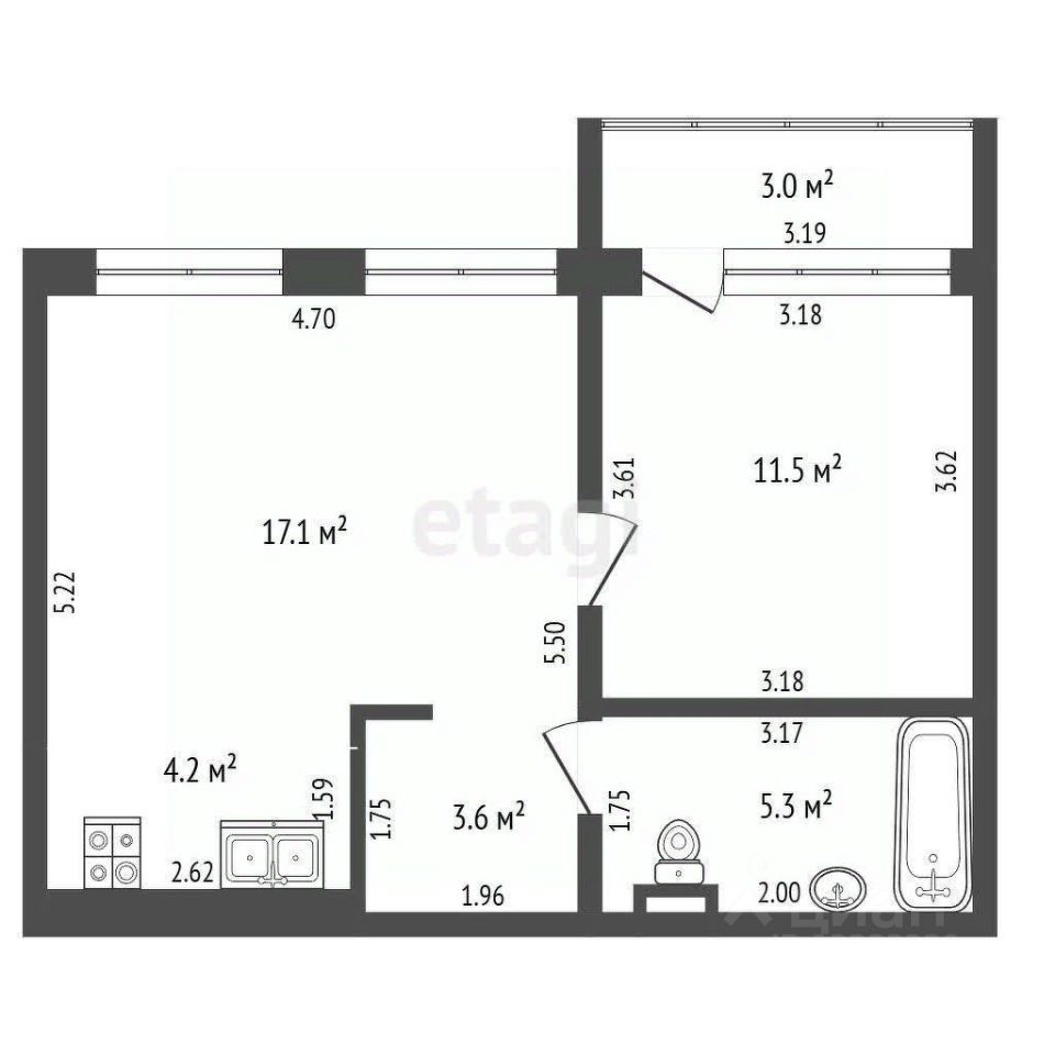 - Оборудованная квартира с кухонной зоной и гостиной, отдельная спальня.