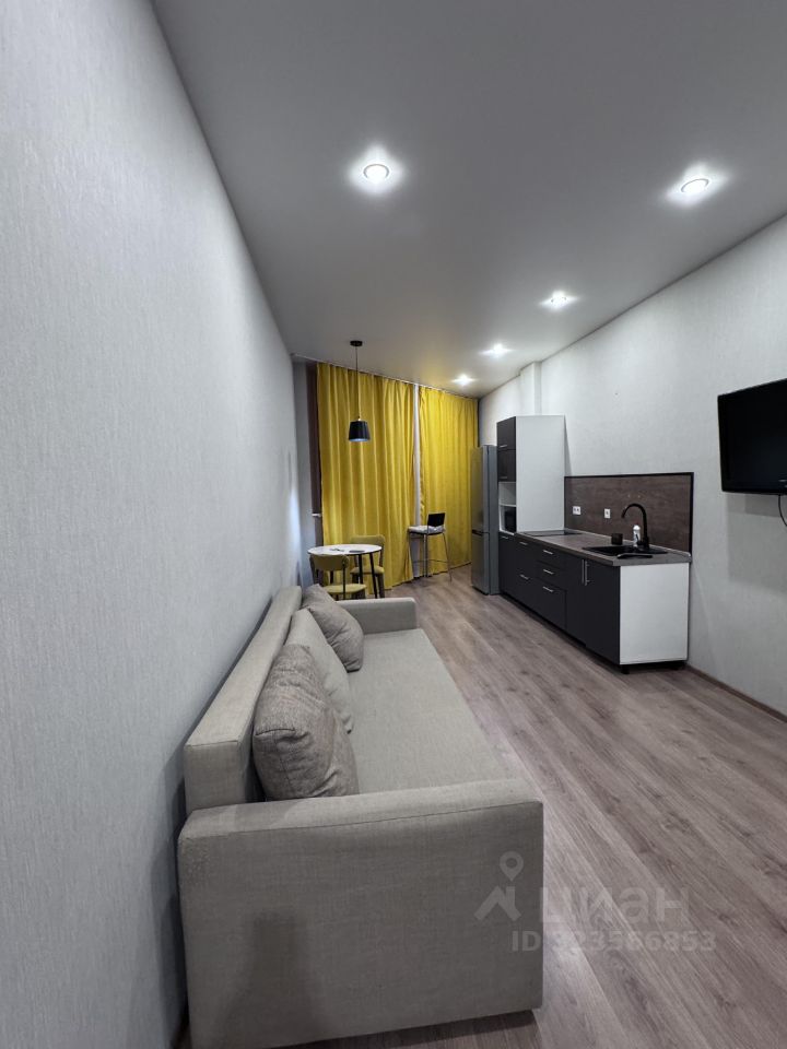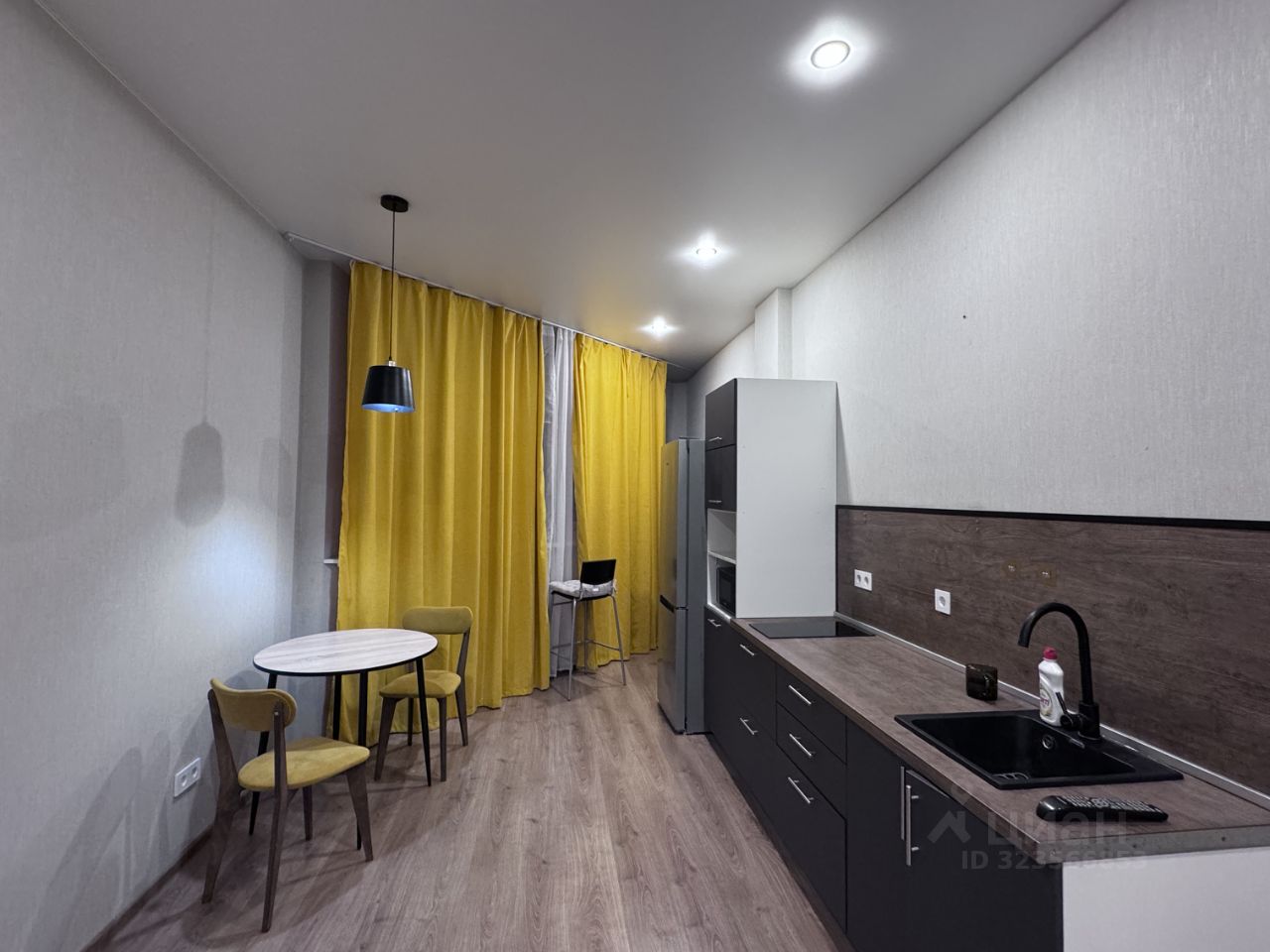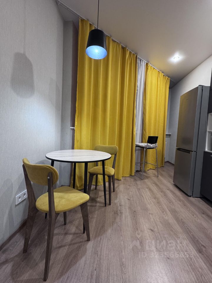 В квартире выполнен евроремонт, что придаёт ей современный и стильный вид. Комната обставлена мебелью, а компактная кухня площадью 5 кв. м оснащена необходимой техникой, включая холодильник и стиральную машину. Ванная комната оборудована ванной, что позволяет расслабиться после долгого дня. Удобная планировка студии делает её отличным вариантом для комфортного проживания.
