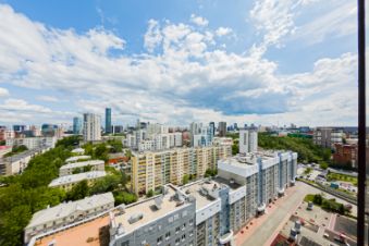 - Лоджия с панорамным остеклением. Из окон открывается красивый вид на город.