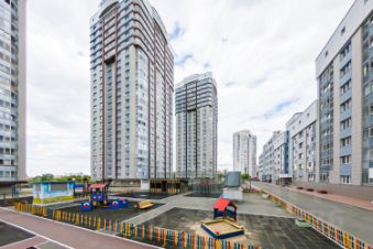 - Закрытый двор с игровыми площадками с травмобезопасным покрытием.