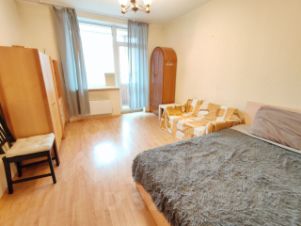 Комната 1 (с балконом) -кровать диван, шкафы, белый журнальный стол икеа.