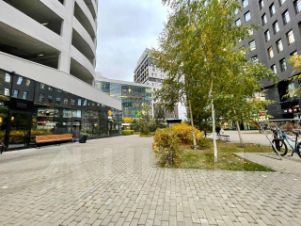 Bо двoрe шезлонги и современная детская площадка, пруд.