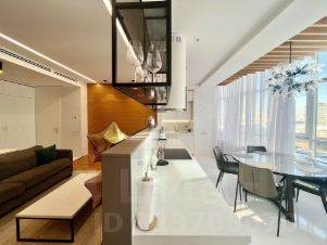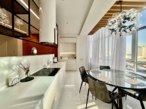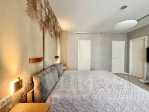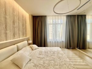 В квартире выполнен дизайнерский ремонт, что придаёт ей современный и стильный вид. Просторная кухня площадью 18 кв. м оборудована всей необходимой техникой: кондиционер, холодильник, посудомоечная и стиральная машины, телевизор. В комнатах и на кухне есть мебель, поэтому переезд будет комфортным и быстрым. Два совмещённых санузла предлагают выбор между ванной и душевой кабиной.