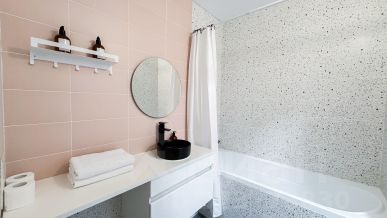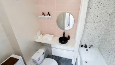 - Санузел с ванной со всеми необходимыми принадлежностями: чистые полотенца, гель для душа, фен, порошок для стирки, ватные палочки и диски.