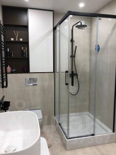 Квартира полностью меблирована: стильная мебель на кухне и в комнатах создаёт атмосферу уюта и комфорта. В квартире есть всё необходимое для комфортного проживания: кондиционер, холодильник, телевизор и интернет. Планировка включает один совмещённый и два отдельных санузла, а также балкон. В ванной комнате установлены как ванна, так и душевая кабина, что позволяет выбирать удобный вариант.