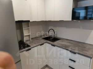 На кухне установлен новый кухонный гарнитур с новой техникой.