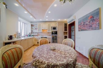 Сантехника и отделка сан.узлов: итальянская керамическая плитка, в большом санузле система "теплый пол", многоуровневые потолки с соответствующим освещением, натяжные потолки. В квартире остается вся мебель.