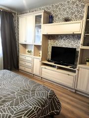 В квартире есть все для комфортного проживания. Кровать 2сп- 160*200 см, Две односпальные кровати, стиральная машина, холодильник, микроволновая печь, плита, чайник, фен, утюг, гладильная доска, постельное бель и полотенца.