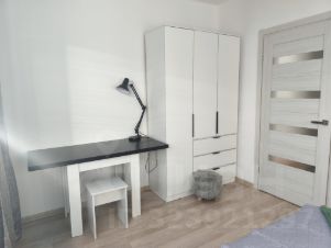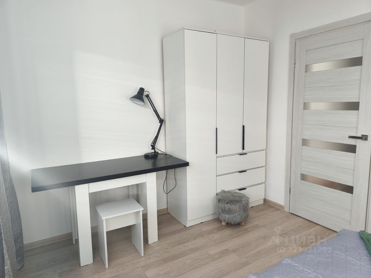 + Есть вся мебель. В спальне - большая кровать с толстым дорогим ортопедическим матрасом, шкаф для одежды и письменный стол. Кухня-гостиная: красивый кухонный гарнитур, диван напротив тумбы с телевизором, обеденный стол. В коридоре - гардеробная система.