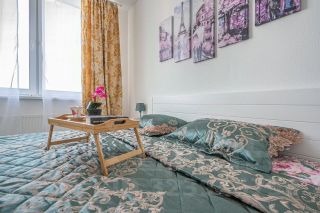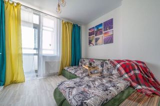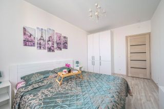 Расположена квартира в новом доме с закрытой территорией и видеонаблюдением, с детской и спортивной площадками.