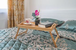 Кровать SuperKingSize(180*200) в спальне и двухместный диван (150*200) в кухне-гостиной.