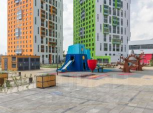 В комплексе располагается: продуктовый магазин и др. Жилой комплекс имеет хорошую транспортную развязку: в шаговой доступности остановки общественного транспорта, государственные и коммерческие организации, а также образовательные и муниципальные учреждения. Двор оборудован детской и спортивной площадками.