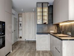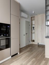 Из техники есть холодильник, духовой шкаф, варочная панель, микроволновая печь, посудомойка, стиральная машина, телевизор, кондиционер.