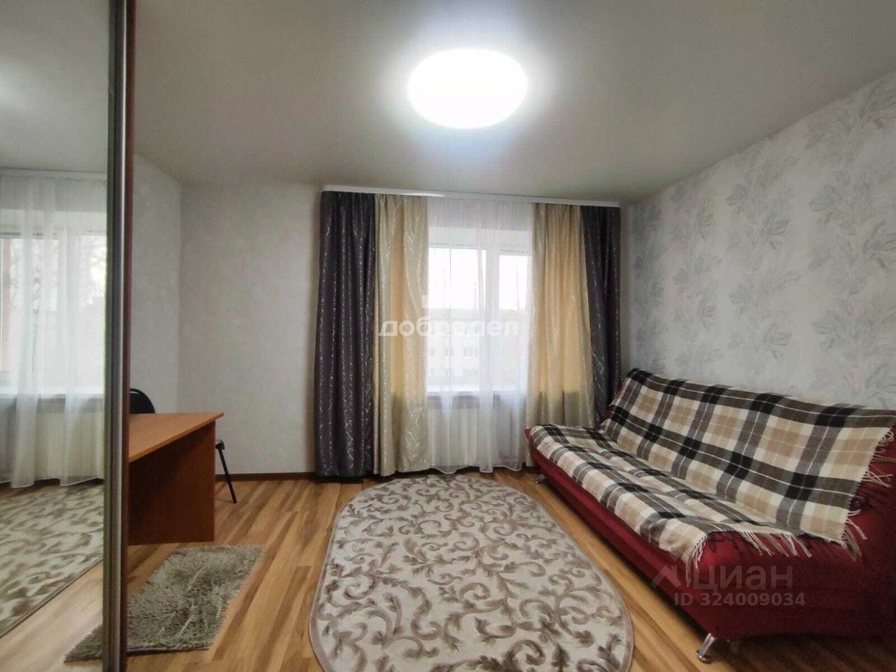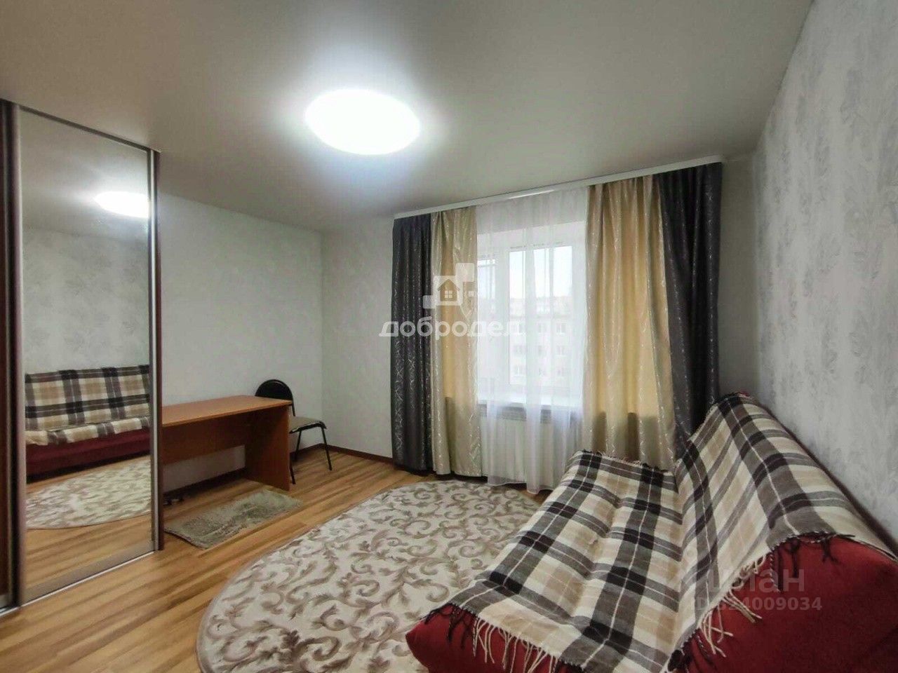 * В комнате: Вместительный шкаф-купе для ваших вещей, удобный раскладной диван, функциональный стол.