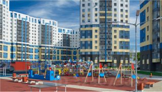 Закрытый и охраняемый двор, детская площадка, зимой заливается корт, летом футбольная и баскетбольная площадка, различные турники и горки для детей.