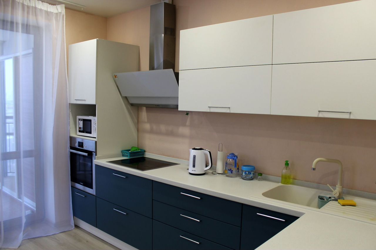 Кухня: холодильник, микроволновая печь, духовка, плита, чайник, посудомоечная машина.