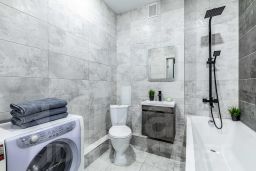 - Полностью оборудованная кухня — вся бытовая техника, посуда и столовые приборы.