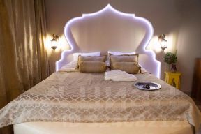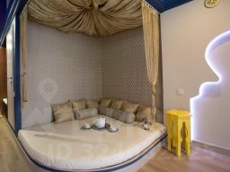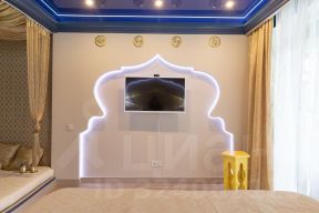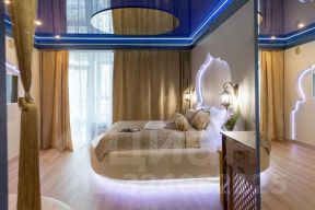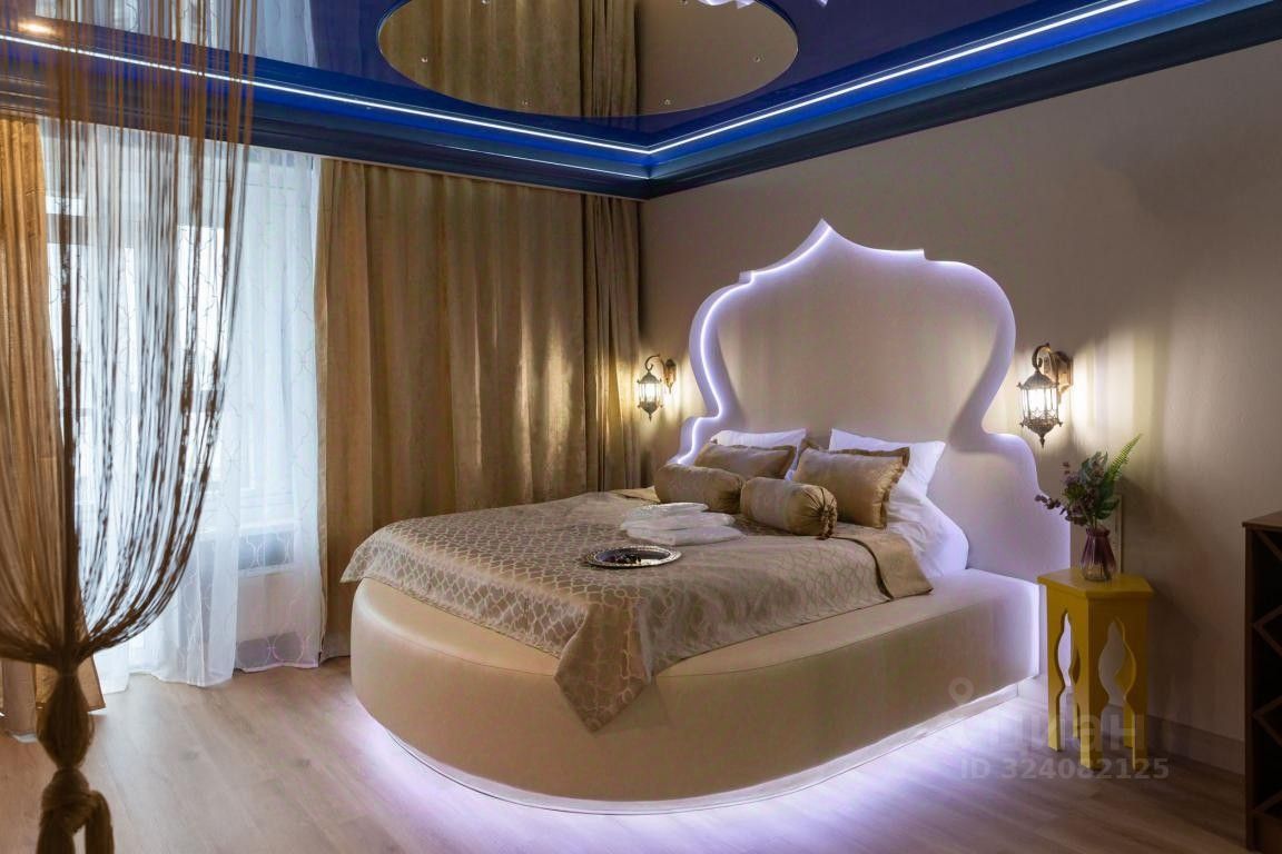 Колоритный восточный дизайн интерьера, удобная кровать king-size с ортопедическим матрасом на подиуме.