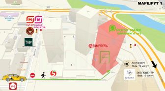 - в 15 минутной (14км) автомобильной доступности до Аэропорта и в 19 минутной (16км) до Екатеринбург Экспо, Дворца водных видов спорта, Кампуса УРФУ им. Первого президента России Б. Н. Ельцина, так как находится у выезда на Кольцовский тракт.