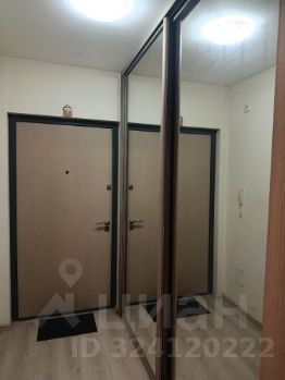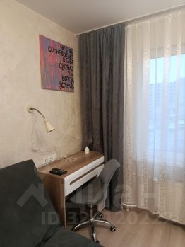 Мебель: Большой встроенный шкаф-купе с зеркалами, диван-кровать, оборудованное рабочее место, кухонный гарнитур.