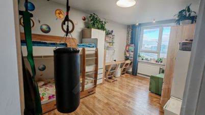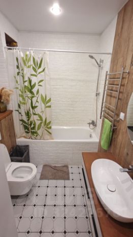 В квартире выполнен хороший ремонт, который создаёт атмосферу уюта и современного стиля. Кухня-гостинная площадью 26 кв. м оснащена всей необходимой техникой: холодильник, посудомоечная машина, духовка, индукционная печь, телевизор и камин. Мебель на кухне и в комнатах добавляет комфорта и удобства. В квартире есть две ванные комнаты, одна из которых оборудована ванной, сушильной машиной и стиральной. Есть одна лоджия, где можно наслаждаться свежим воздухом.