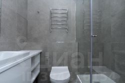 В студии совмещенный санузел с душевой кабиной, а также раковиной с зеркальной подсветкой.