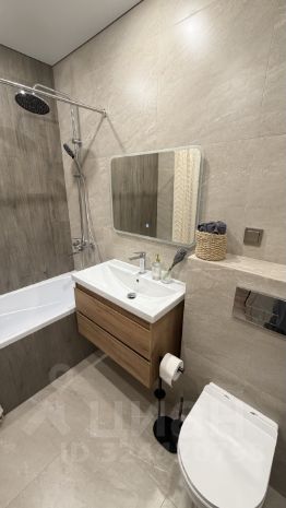 1 санузел: с ванной, есть стиральная машина, зеркало с подсветкой, гигиенический душ, теплый пол