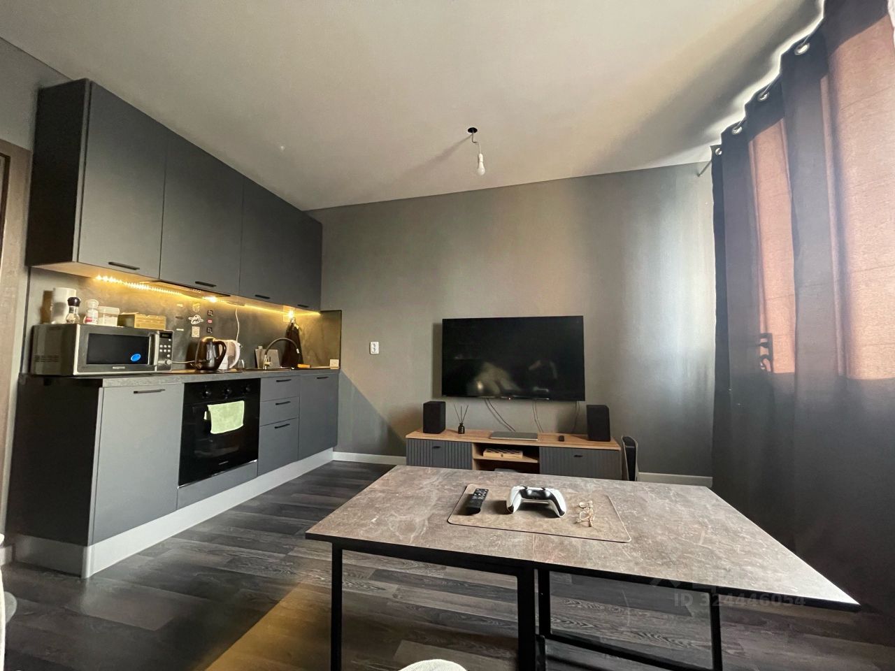 - Раскладываемый диван, очень мягкий и удобный, на нем удобно как сидеть, так и спать - Огромный шкаф на 4 секции для вещей, поместится всё что угодно - Гладильная доска, сушилка для вещей, стиральная машина - Телевизор